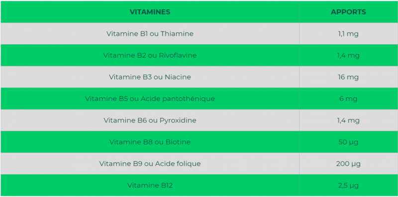 Les vitamines B sont impliquées dans de nombreux rôles, tels que la production d’énergie et le bon fonctionnement du système nerveux. La plupart des vitamines B ne sont pas stockées par l’organisme en quantité suffisante.